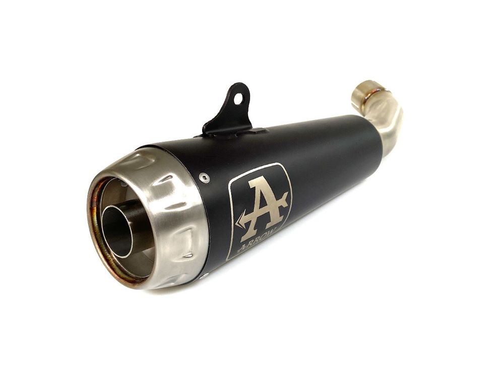 ARROW PRO-RACE / Dark Endschalldämpfer mit Edelstahlhülle bzw. beim Modell Dark mit schwarzer Edelstahl-Hülle in Megafon-Form mit Stahl-Endkappe, mit dB-Killer und Straßenzulassung für KTM
