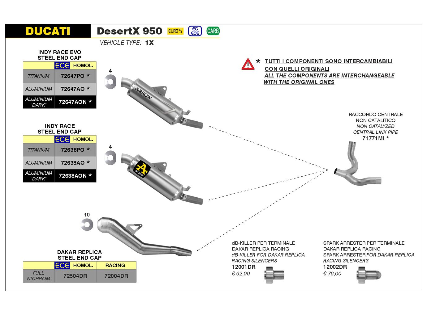 ARROW Dakar Replica Auspuff passend für Ducati Desert X 950 Baujahre: ab 2022