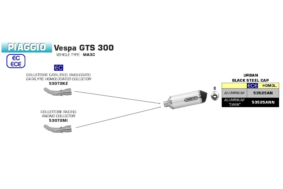 ARROW DARK URBAN - Endschalldämpfer passend für Piaggio Vespa GTS300 (Typ MA3C) / HPE; Baujahre: ab