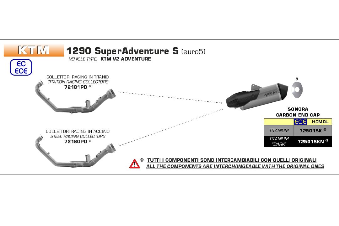 - Kann in Verbindung mit original Krümmer verwendet werden. Optional können die Racingkrümmer (ohne Straßenzulassung) AR-72180PD/AR-72181PD verwendet werden.