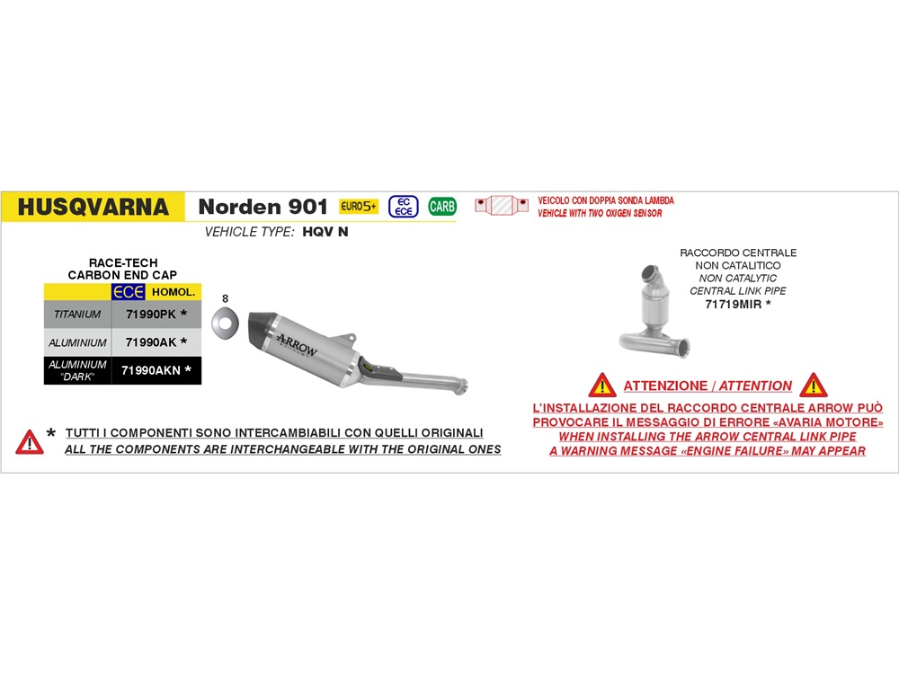 Hersteller: Arrow, ARROW SPECIAL PARTS S.p.A. 06016 SAN GIUSTINO (PG) – Via Citernese 128/130 Capitale sociale euro 800.000 i.v. Mecc.PG 004189, email: privacy@arrow.it, Vertrieb durch alpha Technik GmbH & Co. KG Kronstaudener Weg 1 83071 Stephanskirchen E-Mail info@alphatechnik.de