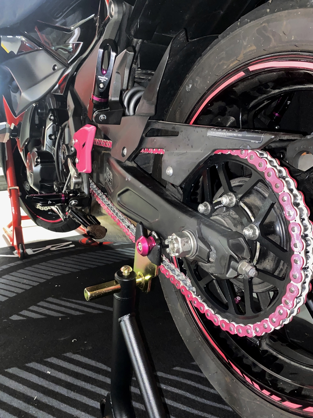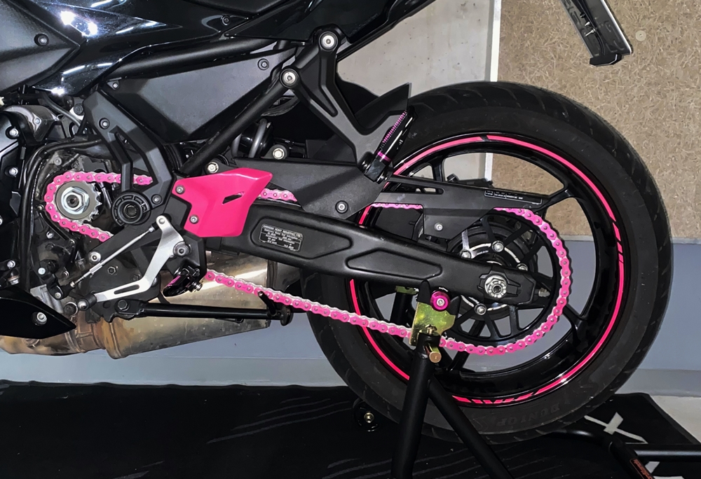 ein Kunde von uns fragte nach einer pinken Kette für die Kawasaki Ninja 650 seiner Freundin.