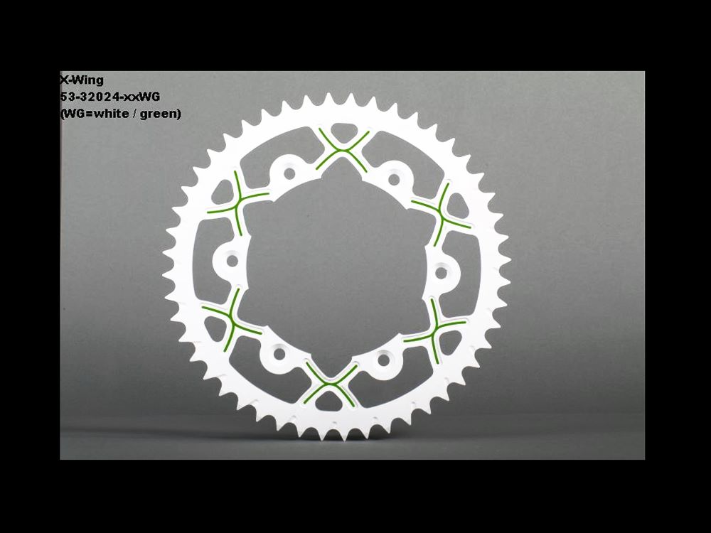 Die X-Wing Kettenräder aus hochfestem Aluminium sind 60% leicher als ein herkömmliches Stahl. Das Kettenrad wird mittels Präzision-CNC Maschinen gefertigt (Plan und Rundlauftoleranzen von unter 0,1 mm)