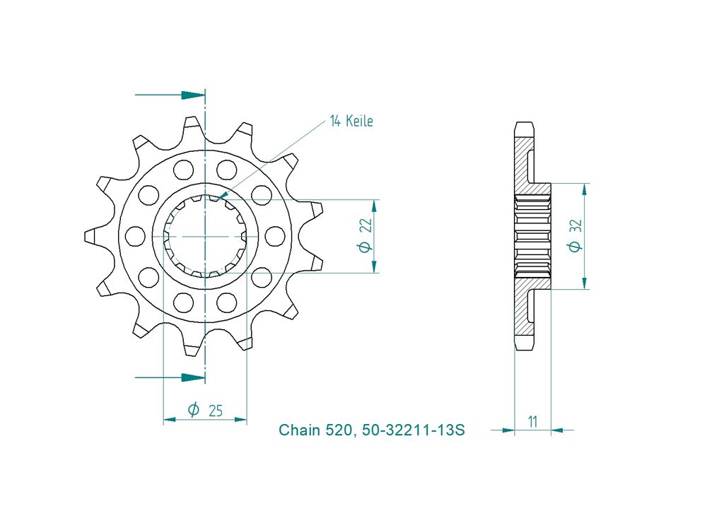 Das Ritzel steht mit folgenden Zähnen zur Verfügung: