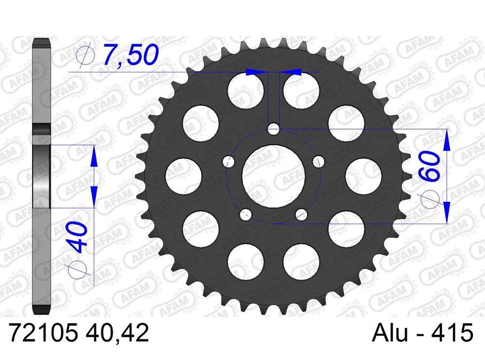 Das Kettenrad in Aluminium steht mit folgenden Zähnen zur Verfügung: