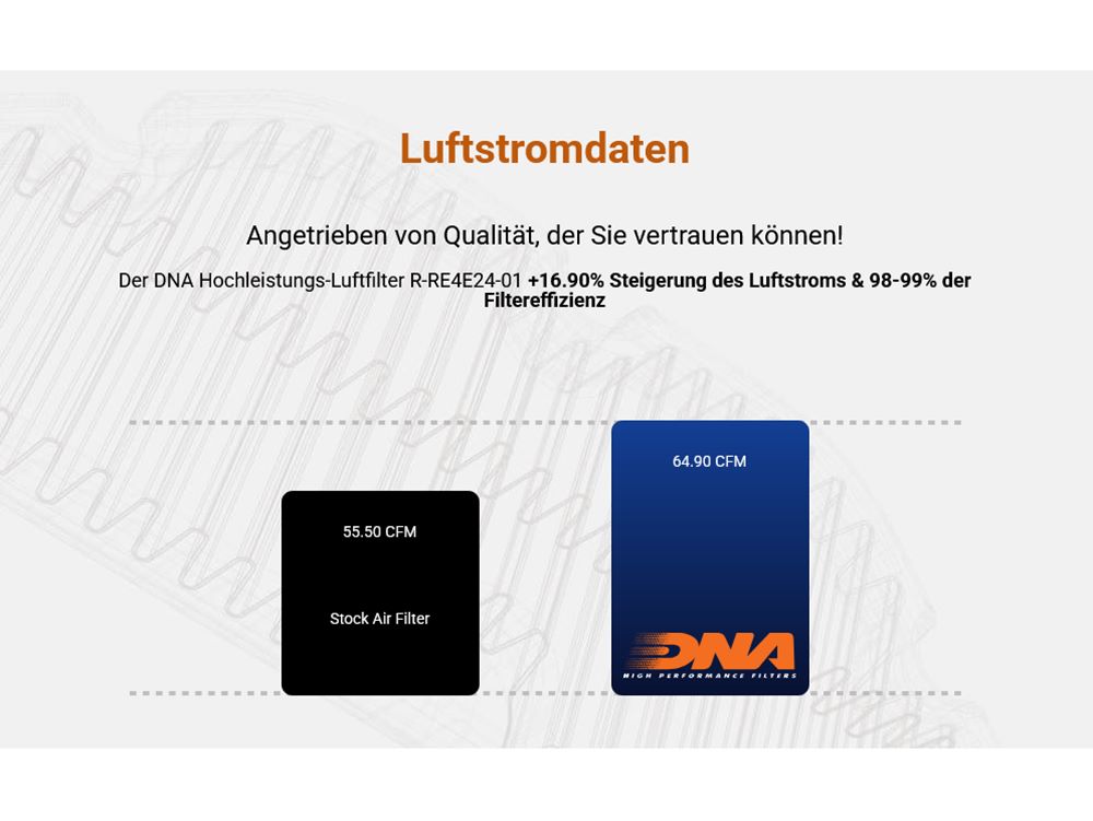 Der Filter sollte 1x jährlich oder alle 15.000 - 30.000 km gereinigt und geölt werden. Der Filter darf nicht ungeölt verwendet werden da das Filtermedium sonst nicht die optimale Filterwirkung erbringt. Für das Reinigen und Ölen dürfen ausschließlich die DNA Serviceprodukte verwendet werden!