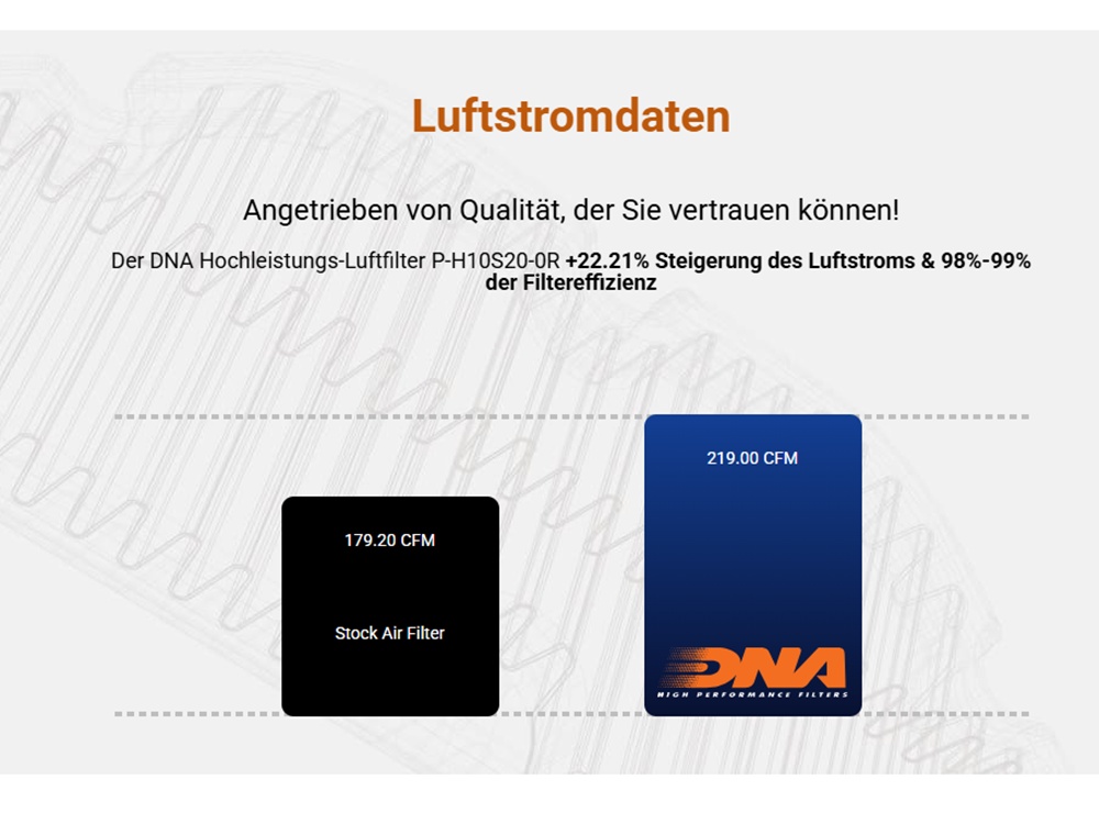 Durch die FCd (Full Contour design) Technology wird die gesamte Fläche des Luftfilterkasteneinlasses als Filtermedium genutzt. Dadurch vergrößert sich der Filterbereich zwischen 20-80 %, der Luftstrom wird erhöht und die Leistung des Motors somit gesteigert. Mit dem erhöhten Luftdurchlass wird zusätzlich der Benzinverbrauch reduziert.