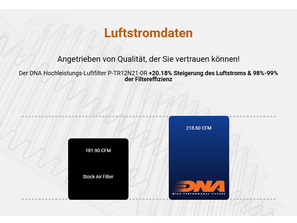 Der Filter sollte 1x jährlich oder alle 15.000 - 30.000 km gereinigt und geölt werden. Der Filter darf nicht ungeölt verwendet werden da das Filtermedium sonst nicht die optimale Filterwirkung erbringt. Für das Reinigen und Ölen dürfen ausschließlich die DNA Serviceprodukte verwendet werden!