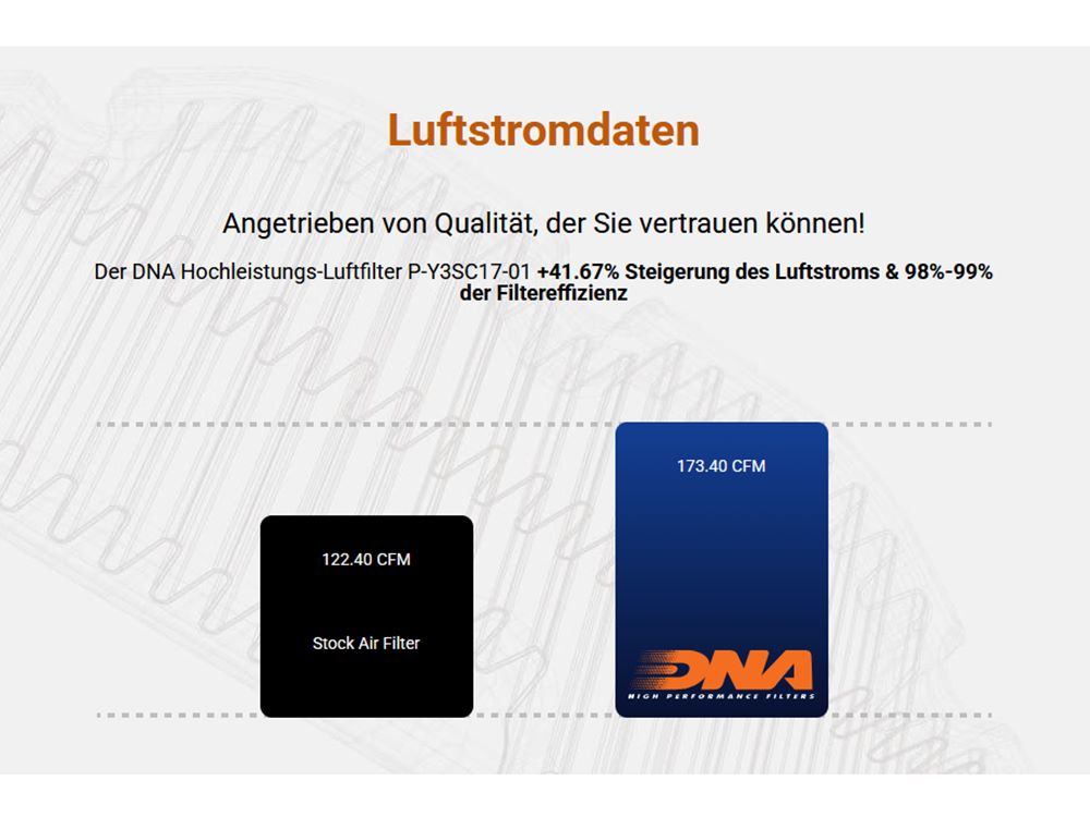 Der Filter sollte 1x jährlich oder alle 15.000 - 30.000 km gereinigt und geölt werden. Der Filter darf nicht ungeölt verwendet werden da das Filtermedium sonst nicht die optimale Filterwirkung erbringt. Für das Reinigen und Ölen dürfen ausschließlich die DNA Serviceprodukte verwendet werden!