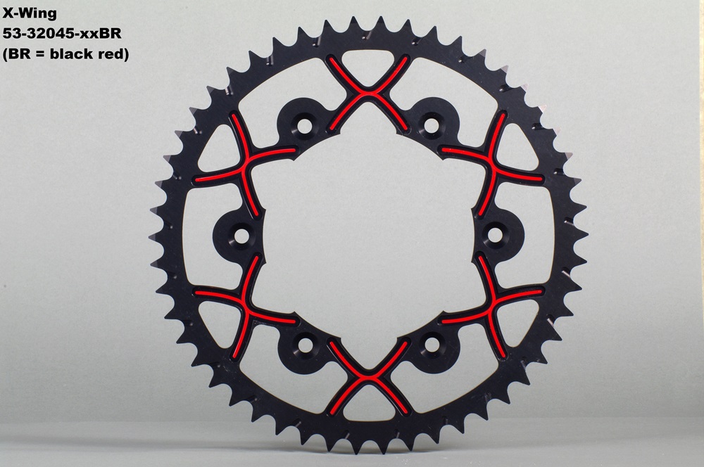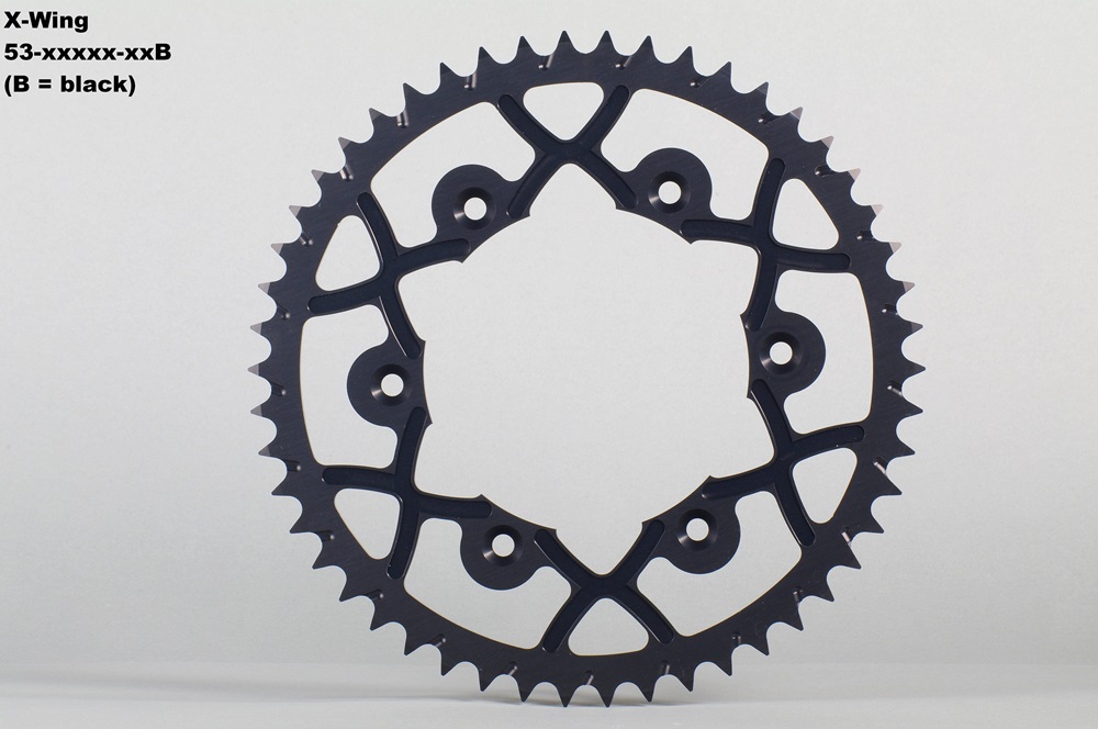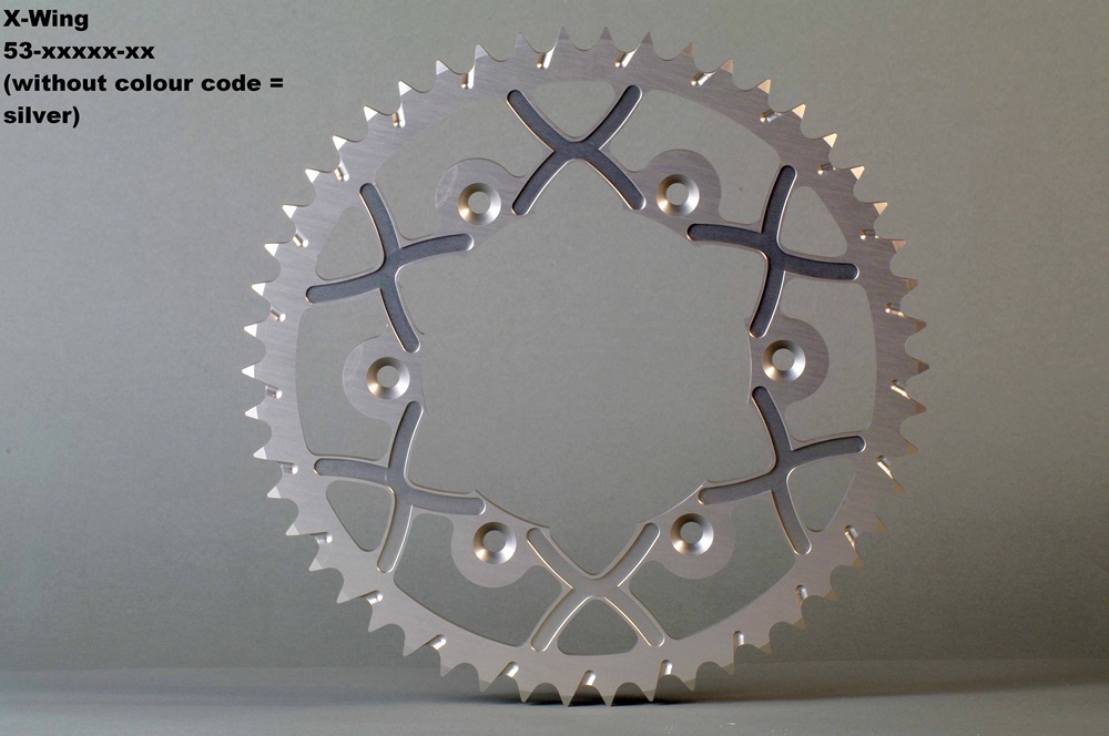 Das X-Wing Aluminiumkettenrad ist verfügbar mit folgenden Zähnen und Farben: