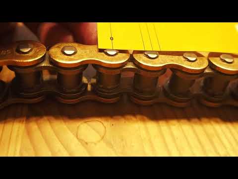 - Lehre auf straffe Kette positionieren - auf rechte Seite der Lehre muss je nach Teilung Pin in Mitte sein - wenn grün dann ok, ab gelb: wechseln wünschenswert