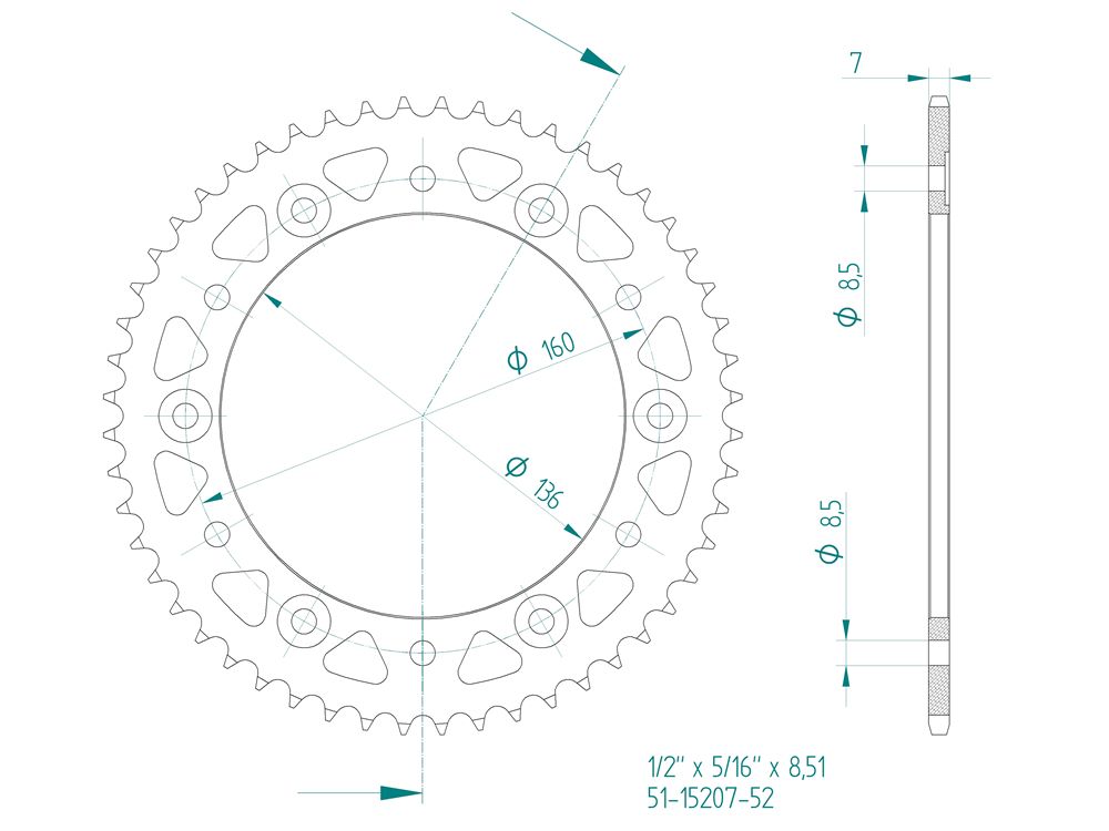 Kettenrad Aluminium 52 Zähne (428) passend für Beta 125 Urban