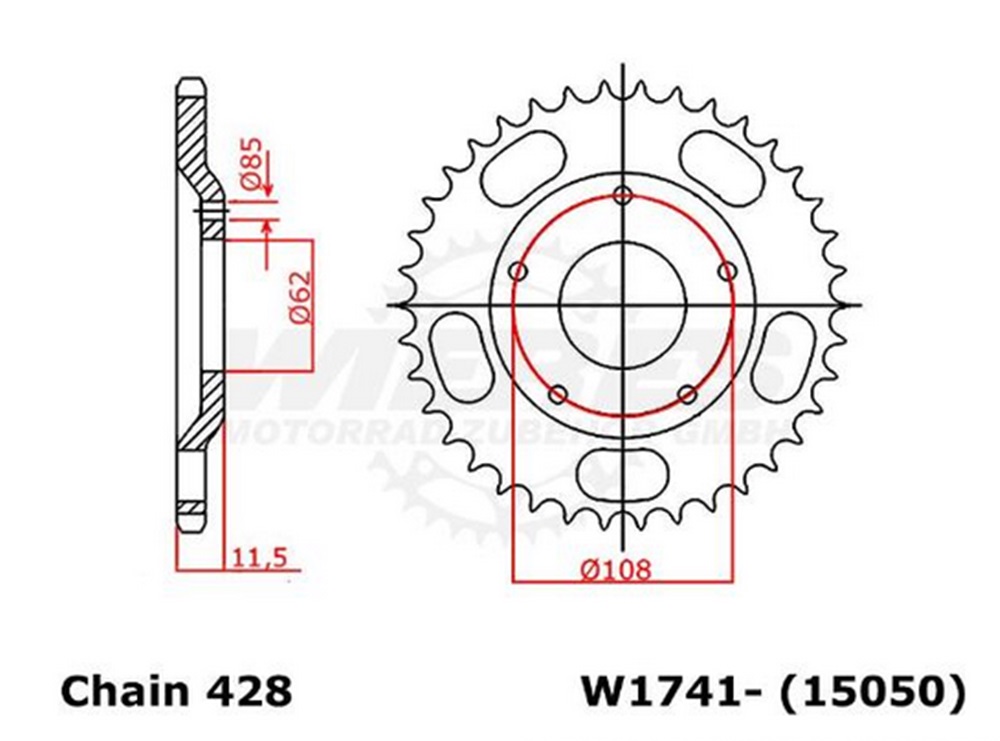 Das Kettenrad besteht aus hochwertig verarbeiteten Stahl und weist neben der präzisen Verarbeitung eine lange Lebensdauer auf. Die Teilung ist 428.