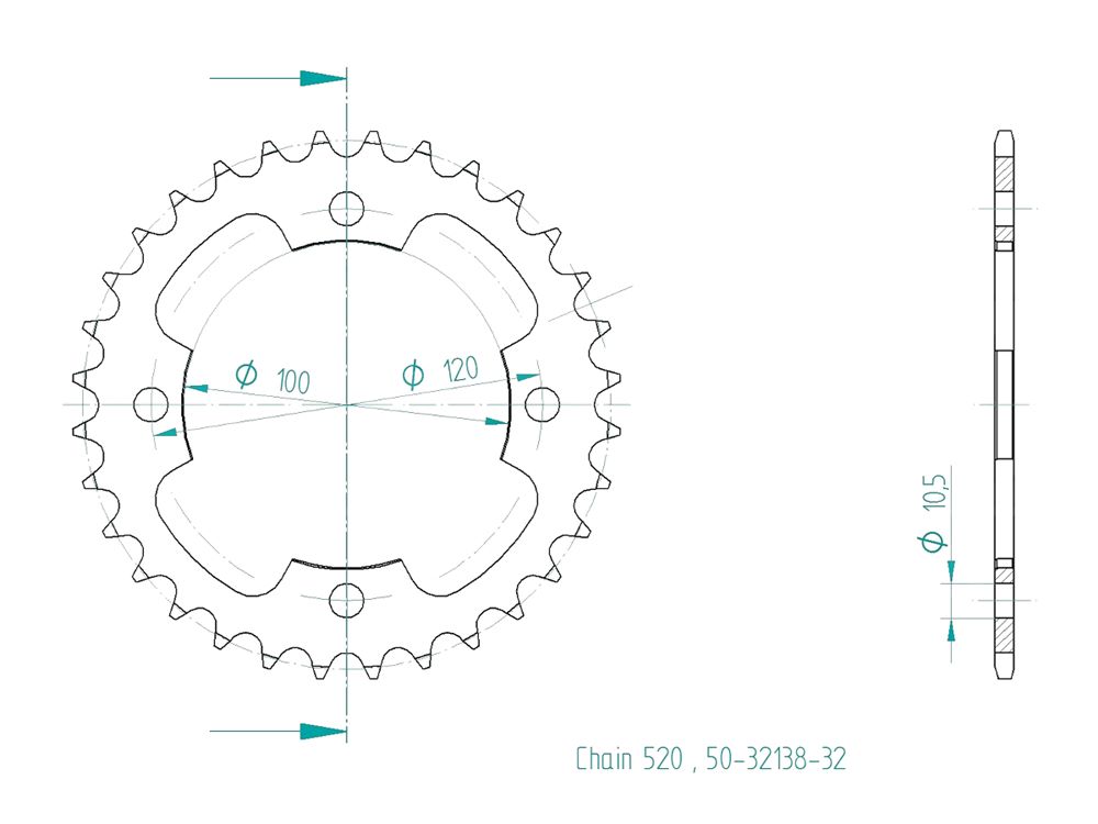 Kettenrad Stahl 32 34 36 38 Zähne (520)