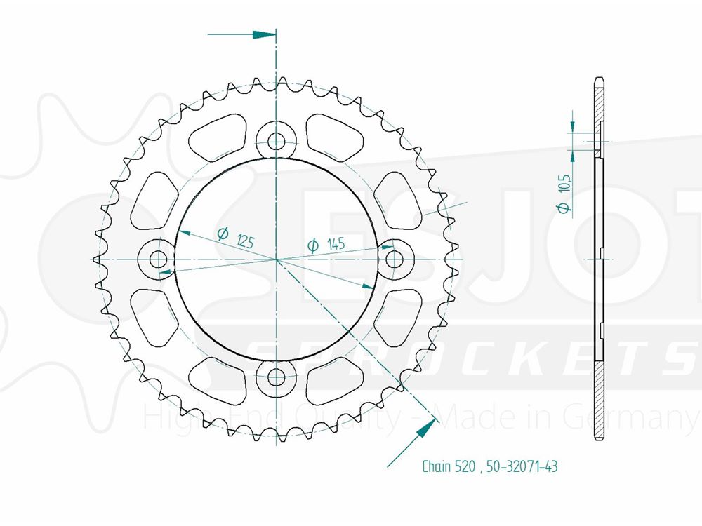 Das Kettenrad besteht aus hochwertig verarbeitetem Stahl (C49 / C45) und weist neben der präzisen Verarbeitung an CNC eine lange Lebensdauer auf. Dieses ausgehärtete Material bürgt, in Verbindung mit kompletter Fräsbearbeitung auf modernsten CNC-Maschinen, für höchste Qualität. Die Teilung ist 530.