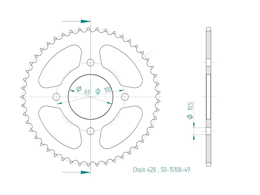 Das Kettenrad besteht aus hochwertig verarbeitetem Stahl (C49 / C45) und weist neben der präzisen Verarbeitung an CNC eine lange Lebensdauer auf. Dieses ausgehärtete Material bürgt, in Verbindung mit kompletter Fräsbearbeitung auf modernsten CNC-Maschinen, für höchste Qualität. Die Teilung ist 428.