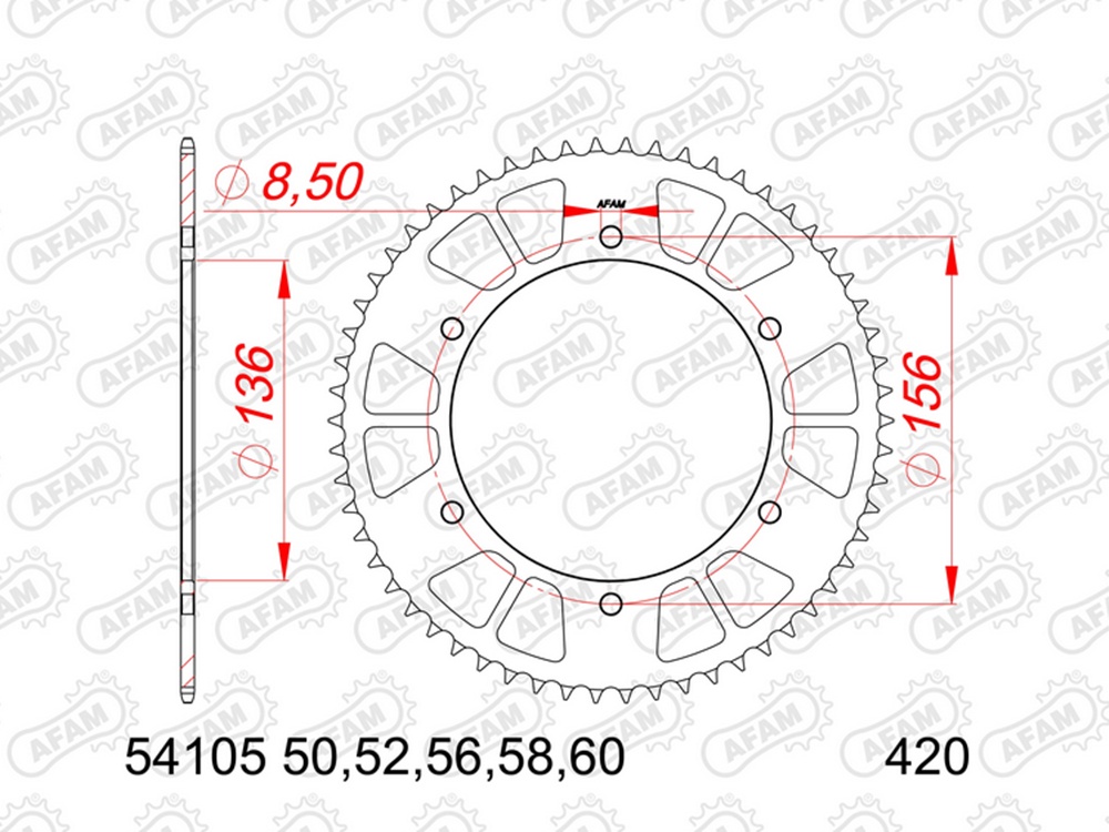 Kettenrad Stahl 50 52 56 58 60 Zähne (420) passend auf Fantic XE 50 / XM 50 ab 2021