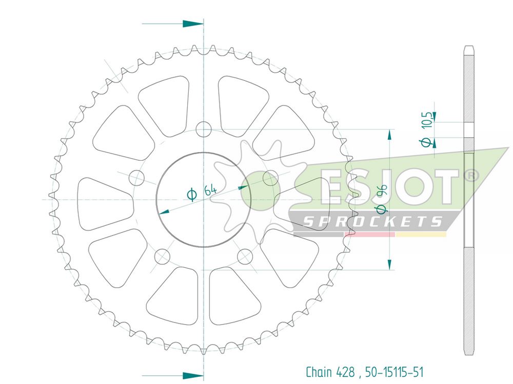 Das Kettenrad besteht aus hochwertig verarbeitetem Stahl (C49 / C45) und weist neben der präzisen Verarbeitung an CNC eine lange Lebensdauer auf. Dieses ausgehärtete Material bürgt, in Verbindung mit kompletter Fräsbearbeitung auf modernsten CNC-Maschinen, für höchste Qualität. Die Teilung ist 428.