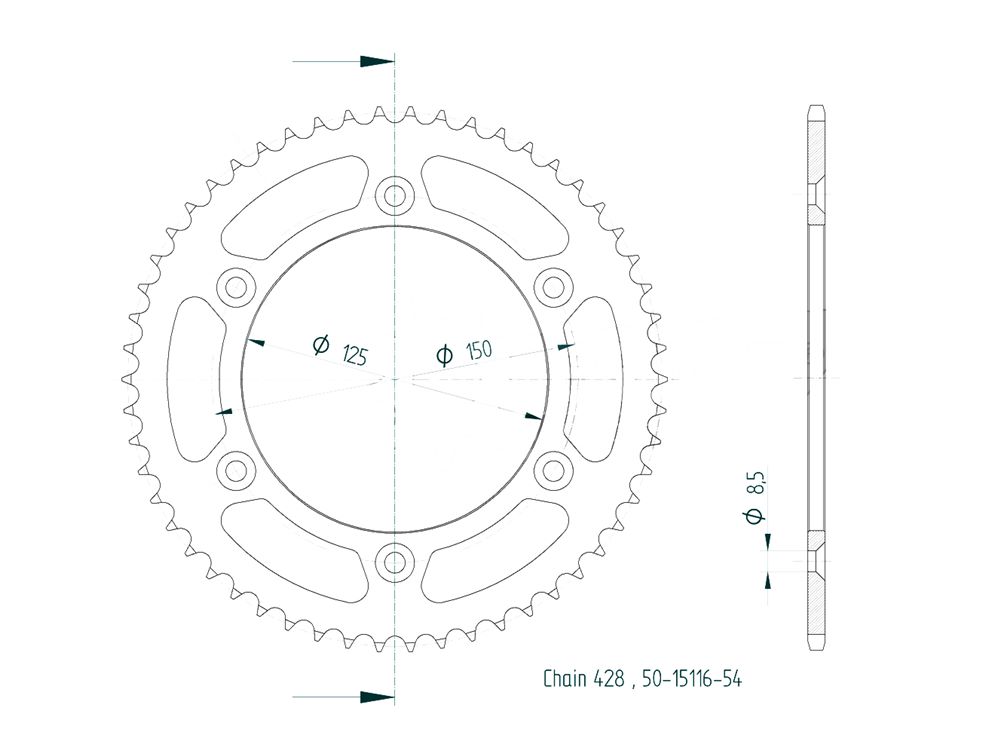 Kettenrad Stahl 54 Zähne (428) passend für SWM Ace of Spades / Grand Milano Outlaw