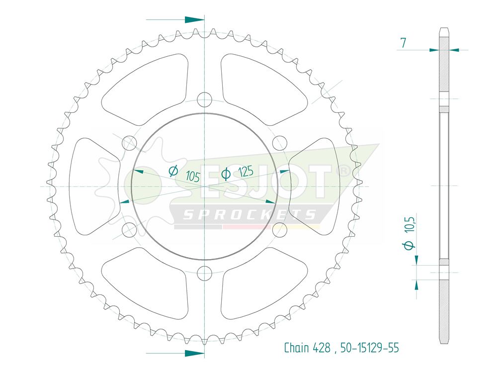 Kettenrad Stahl 55 Zähne (428) passend für Hanway Furious 125 (Bj.18-)