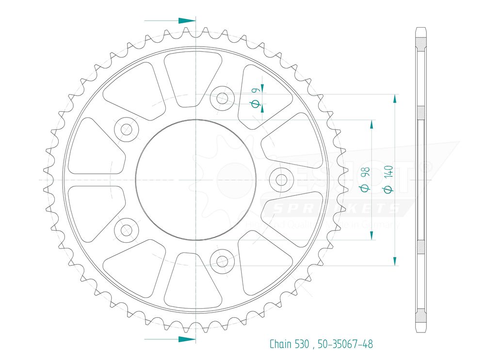 Das Kettenrad besteht aus hochwertig verarbeiteten Stahl und weist neben der präzisen Verarbeitung eine lange Lebensdauer auf. Die Teilung ist 530.