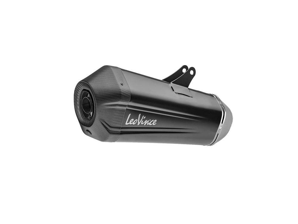 LeoVince präsentiert mit der neuen LV-12 Serie einen dynamischen und eleganten Schalldämpfer für Reise-Enduros und Maxi-Scooter. Die doppelflutigen Anlagen bestehen aus AISI 304 Edelstahl in einem matten Finish. Das LeoVince Logo wurde hochwertig aufgelasert. Die Endkappe ist aus Vollcarbon und entsprechend dem Gesamtbild mit mattem Klarlack versehen. Diese Beschichtung dient auch zusätzlich der maximalen UV-Beständigkeit.