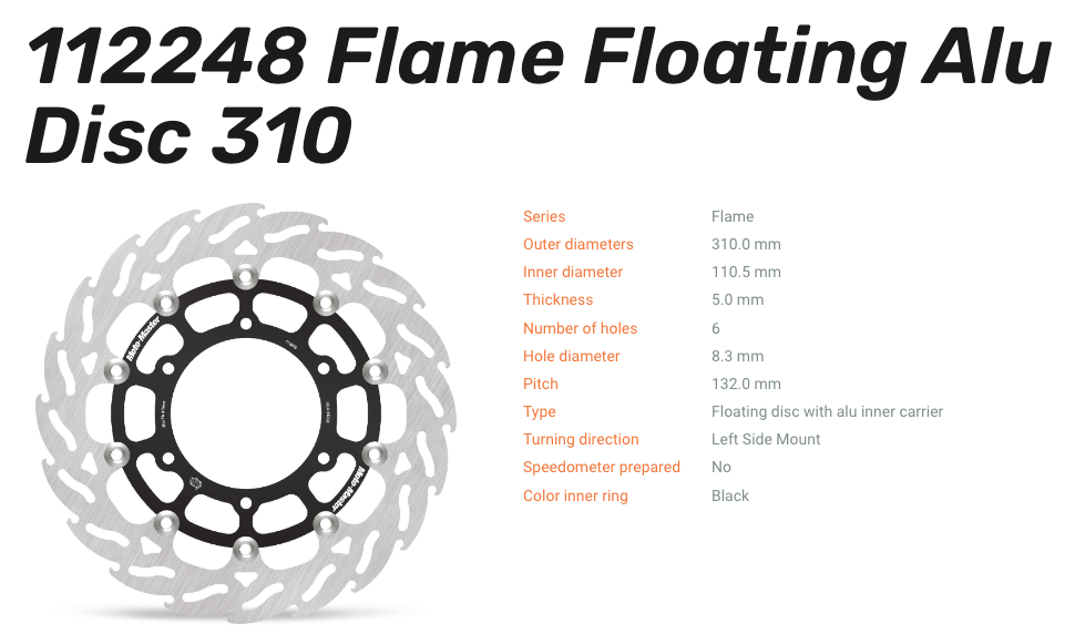 Moto Master Bremsscheiben mit perforierter Bremsfläche für ein perfektes Bremsen sind aus Erkenntnissen des Rennsports entwickelt. Moto.Master steht für eine perfekte Passform und eine außergewöhnlich sportliche Optik. Alle Bremsscheiben sind aus gehärtetem und veredeltem Chromolybdän-Stahl gefertigt und präzisions-lasergeschnitten, CNC-gefräst und oberflächenbehandelt. Auch bei hoher Hitzeentwicklung sind Formstabilität, Schwingungsarmut und gleichbleibende Bremsleistung garantiert. Das Design sorgt für eine Selbstreinigung der Bremsscheibe und eine optimale Temperaturverteilung und Hitzeableitung.