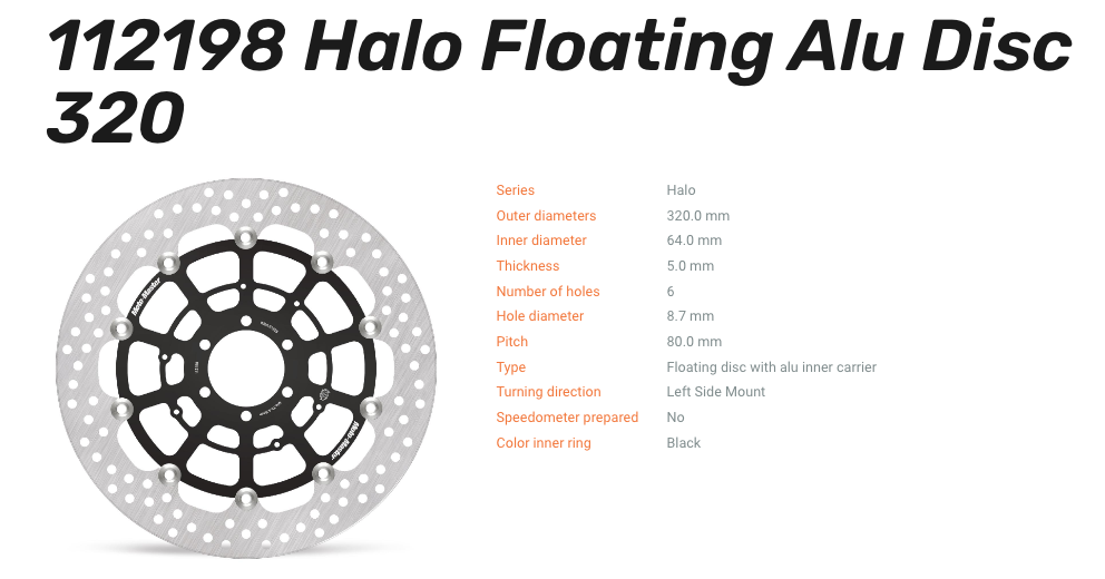 Moto-Master Bremsscheibe Floating-Alu Halo-Serie passend für BMW HP4 Schmiedefelge S 1000 R RR XR / K 1600 - 112198