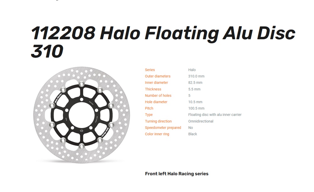 Moto-Master Bremsscheibe Halo Racing 5.5 vorn passend für Triumph Daytona Street Triple 765 / Thruxt