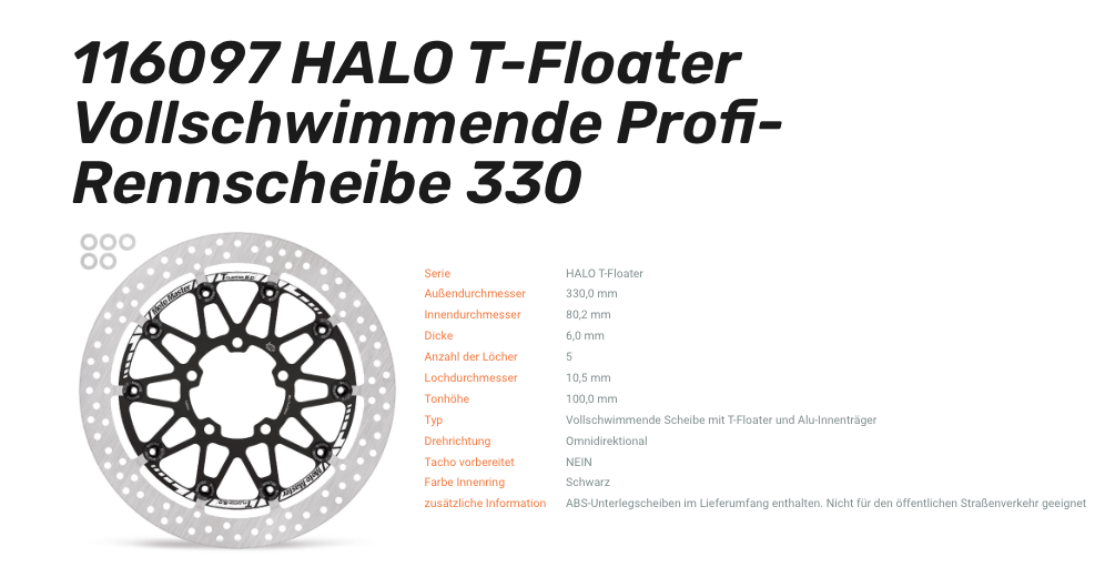 Moto-Master schwimmende Profi-Rennscheibe Halo T-Floater passend für Kawasaki - 116097