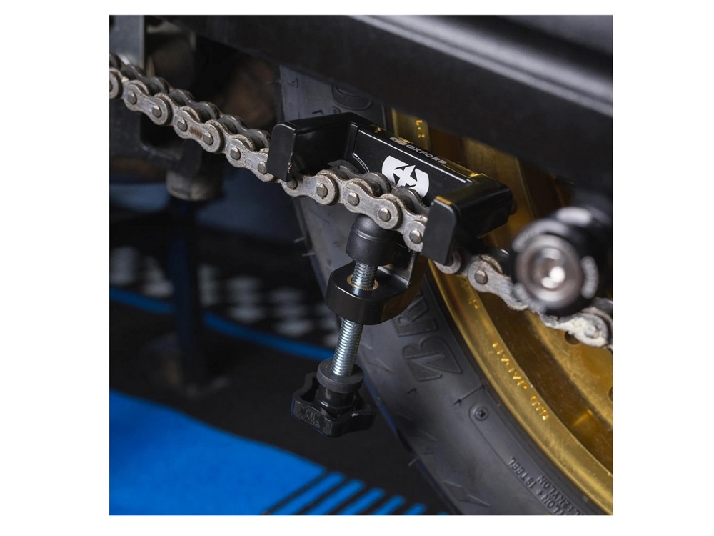 Kettenspannwerkzeug zum einfachen Prüfen und Einstellen der Kettenspannung. Für alle Kettensorten und Fabrikate geeignet
