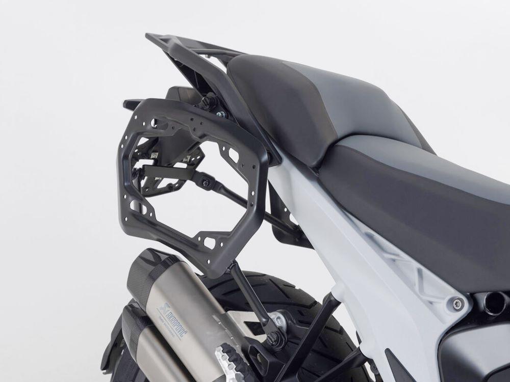 Für die Montage von Seitenkoffern am PRO Seitenträger sind spezifische Adapterkits notwendig. Diese sind separat erhältlich für die SW-MOTECH Koffer der Serien TRAX ADV, TRAX ION und AERO ABS sowie SysBag WP L mit Adapterplatte. Auch für Koffersysteme anderer Hersteller sind Adapterkits separat erhältlich.