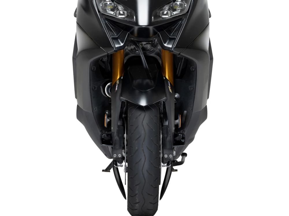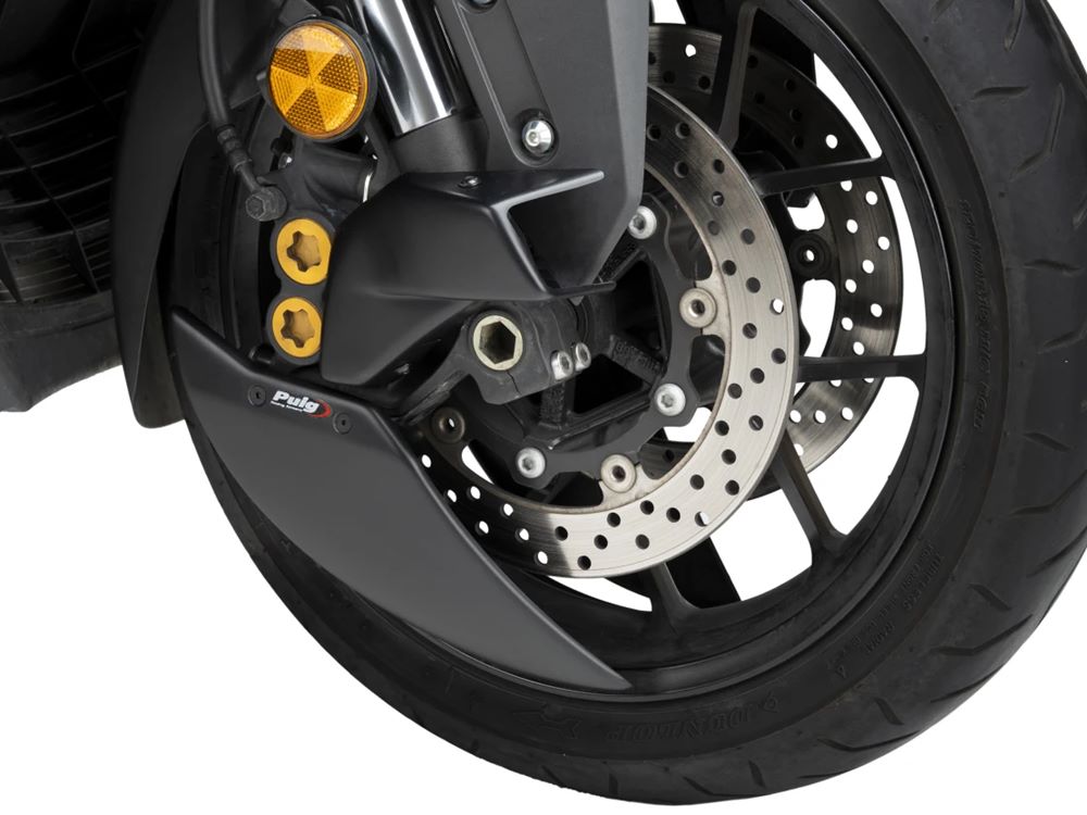 Sein durchdachtes Design eliminiert nicht nur eine sportlichere und individuellere Ästhetik, sondern beseitigt auch Turbulenzen am Vorderrad, indem es eine teilweise linsenförmige Abdeckung schafft, die die Aerodynamik des Motorrads begünstigt, insbesondere bei hohen Geschwindigkeiten. Inklusive robuster, leichter Aluminiumhalterungen in dezent strukturiertem Schwarz.