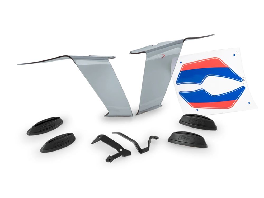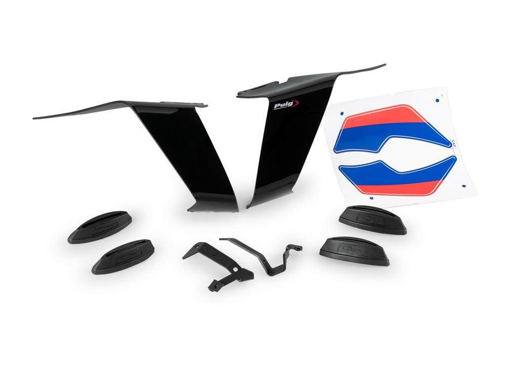 Puig bietet die Möglichkeit, die Spoiler individuell zu gestalten und aus einer breiten Palette von Farben zu wählen. Und wenn der Kunde es wünscht, kann der Puig-Klebesatz hinzugefügt werden, der das Produkt in den Farben Blau und Rot enthält.
