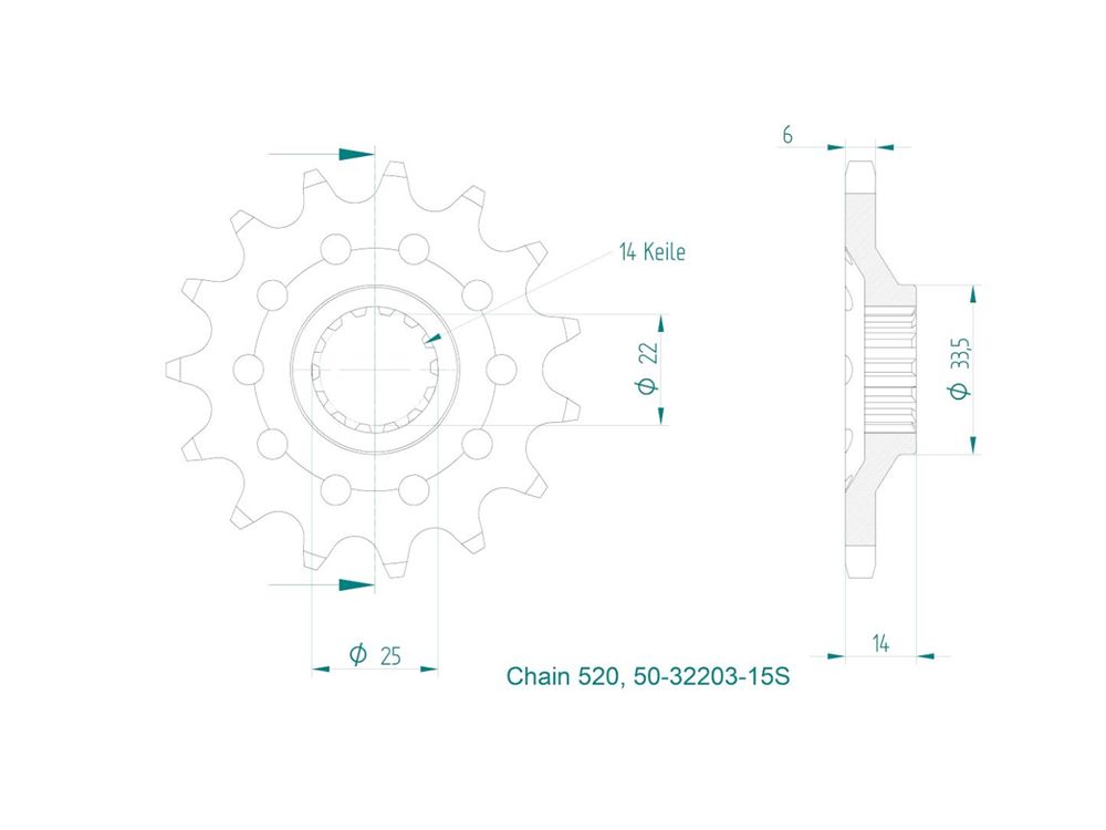- 15 Zähne als Supersportritzel mit Erleichterungsbohrungen