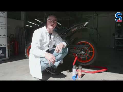 Dose vor Gebrauch schütteln. Produkt gleichmäßig und sparsam auf die INNEN-Seite der trockenen, sauberen Kette aufsprühen. Ablüftzeit mind. eine Stunde, ideal über Nacht. Kette nach spät. 1.000 km nachschmieren und spät. nach drei Schmiervorgängen mit S100 Kettenreiniger reinigen.