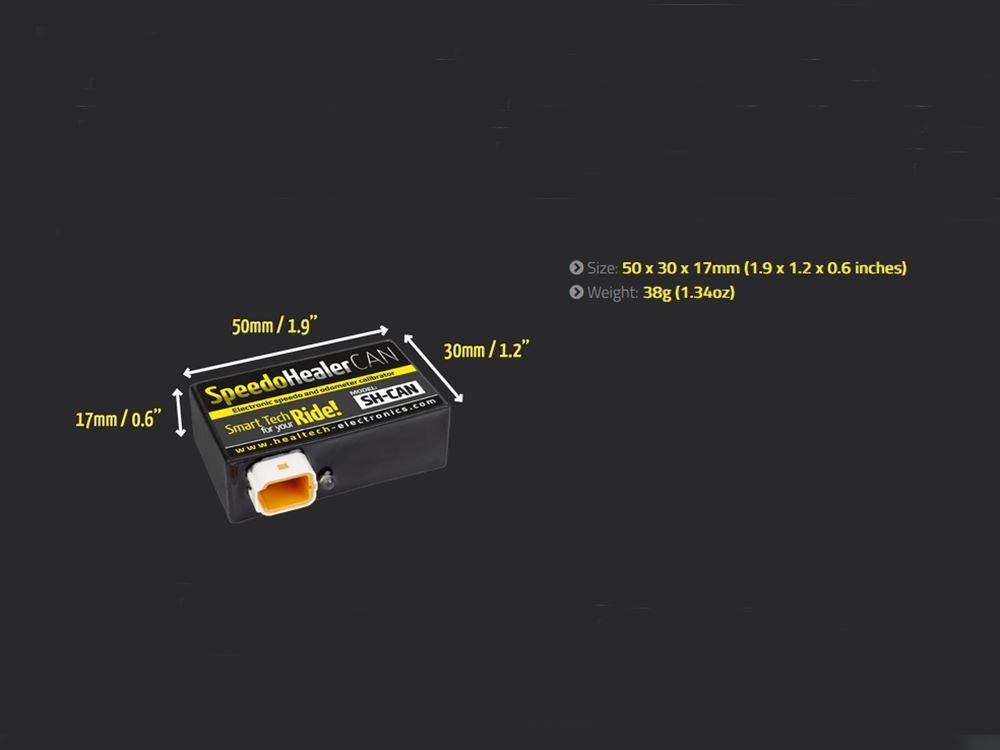 Der SpeedoHealer CAN (SH-CAN) ist die neueste Generation der SpeedoHealer Familie und wurde speziell für Motorräder/ATVs mit CAN-BUS System entwickelt. Mit dem SpeedoHealer können Sie den werksseitigen Tachofehler kompensieren und haben einen präzisen Tacho, auch wenn Sie unterschiedliche Radgrößen verwenden.